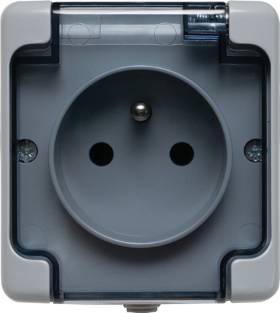 W.1 GREY NT OUTLET 1X SCHUKO VERTICAL IP55 SPRING TERMINALS 16A 230V