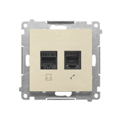 SIMON 55 COMPUTER OUTLET RJ45 CATEGORY 5E + TELEPHONE RJ12 MODULE; CHAMPAGNE MATT