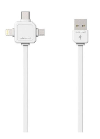 USB CABLE 1.5M 3IN1 – APPLE LIGHTNING/ MICRO USB/ MINI USB FLAT WHITE