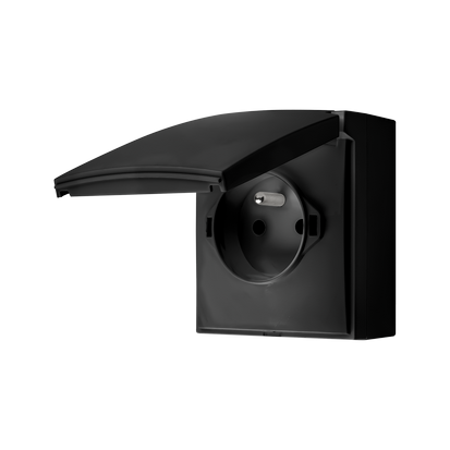 CEDAR BLACK SOCKET NT 2X Z/U WITH FLAP IP44 SCREW TERMINALS 16A 250V