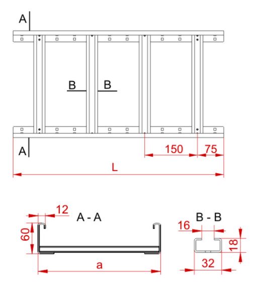 | Rung centre spacing |