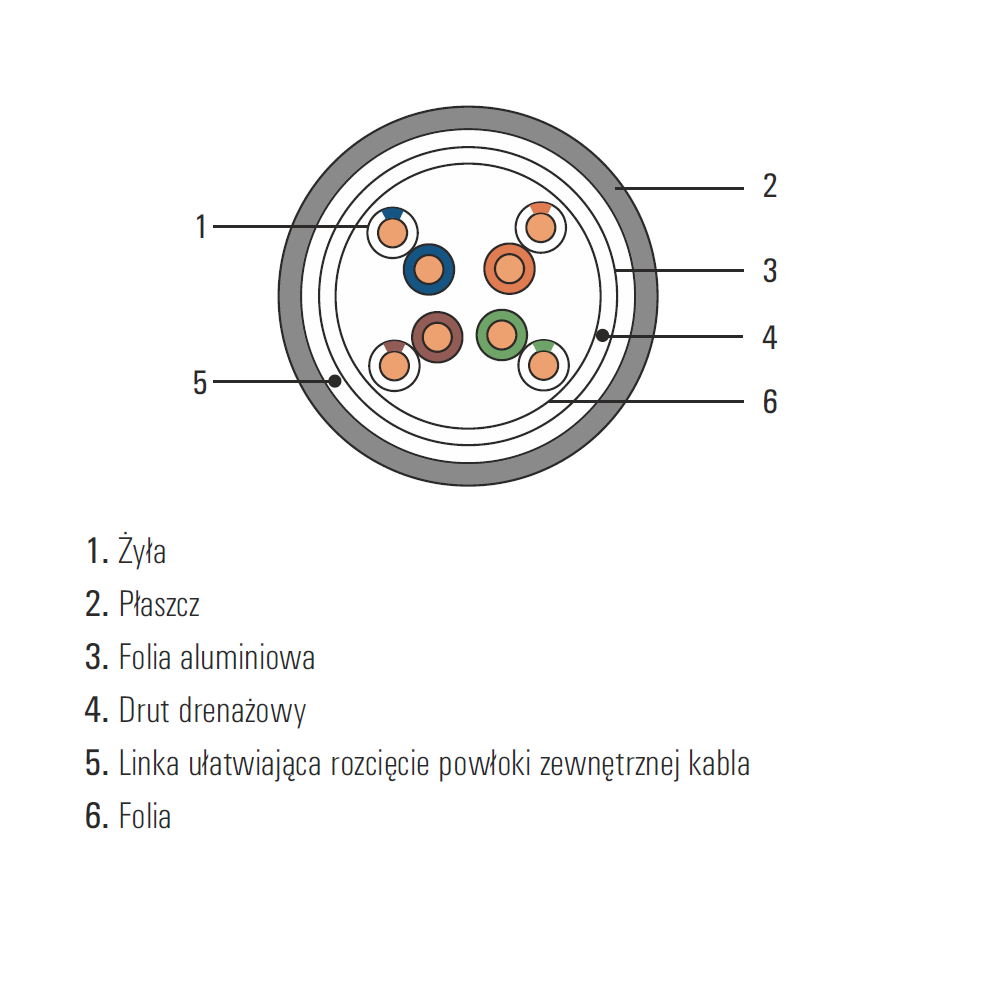 F/UTP 4X2X0.54 GREY COMPUTER CABLE OP.305M CAT.6 SHIELDED WIRE CL.1
