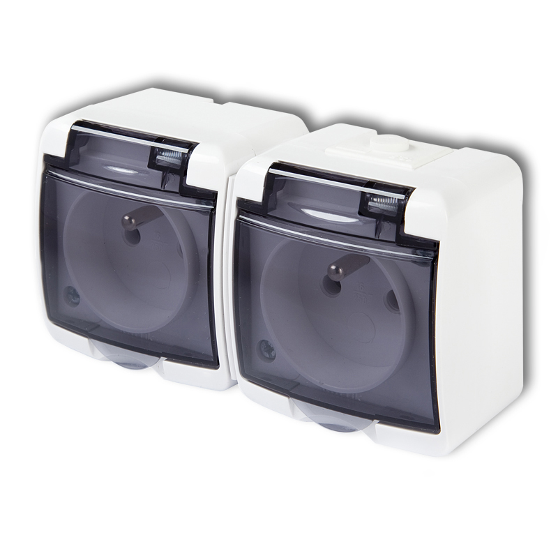 AQUANT GREY SOCKET NT 2X Z/U WITH FLAP IP55 SCREW TERMINALS 16A 250V