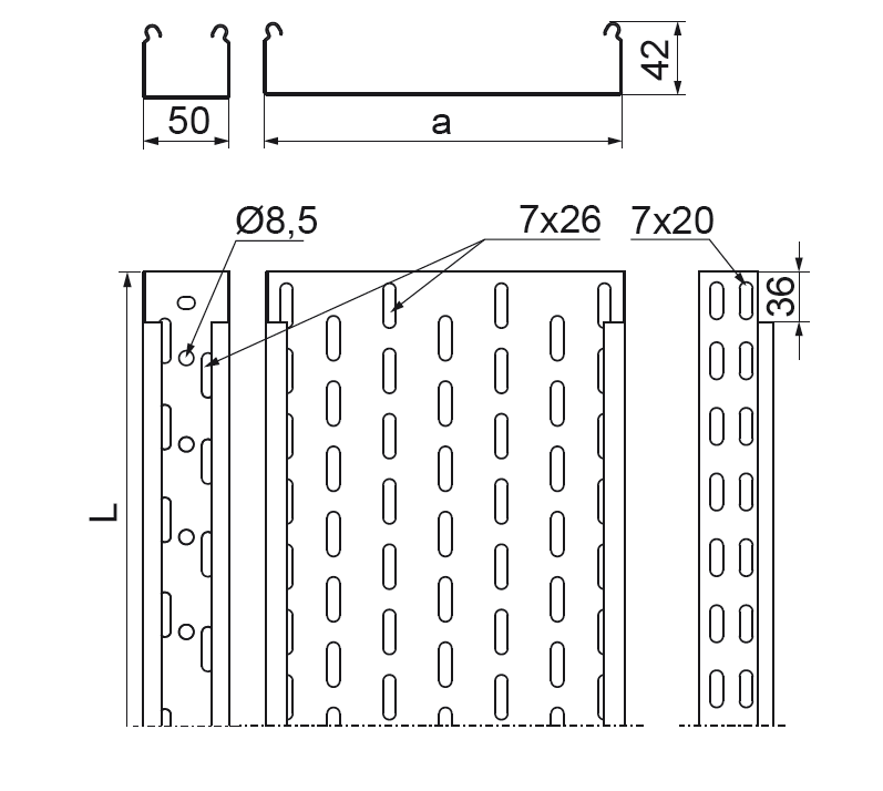 KGR50H42/2L CABLE TRAY 50H42 2M 0.5MM LACQUERED BLUE