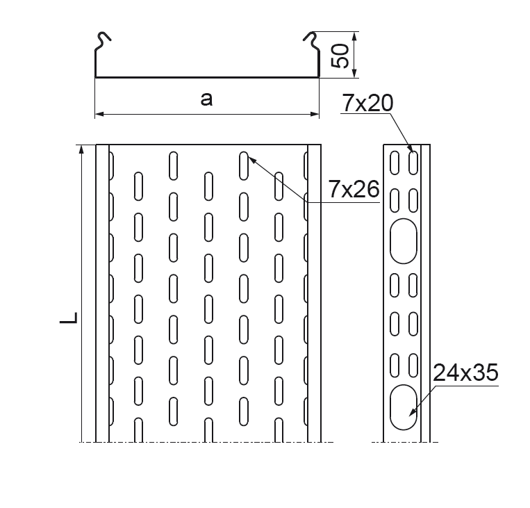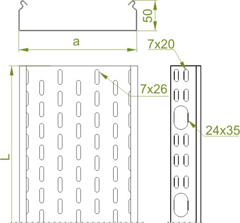 Koryta ze stali kwasoodpornej o grubości 1,5 mm wykonane są bez górnego przetłoczenia (z zagięciem pod kątem prostym). Brak możliwości zatrzaskiwania pokryw.