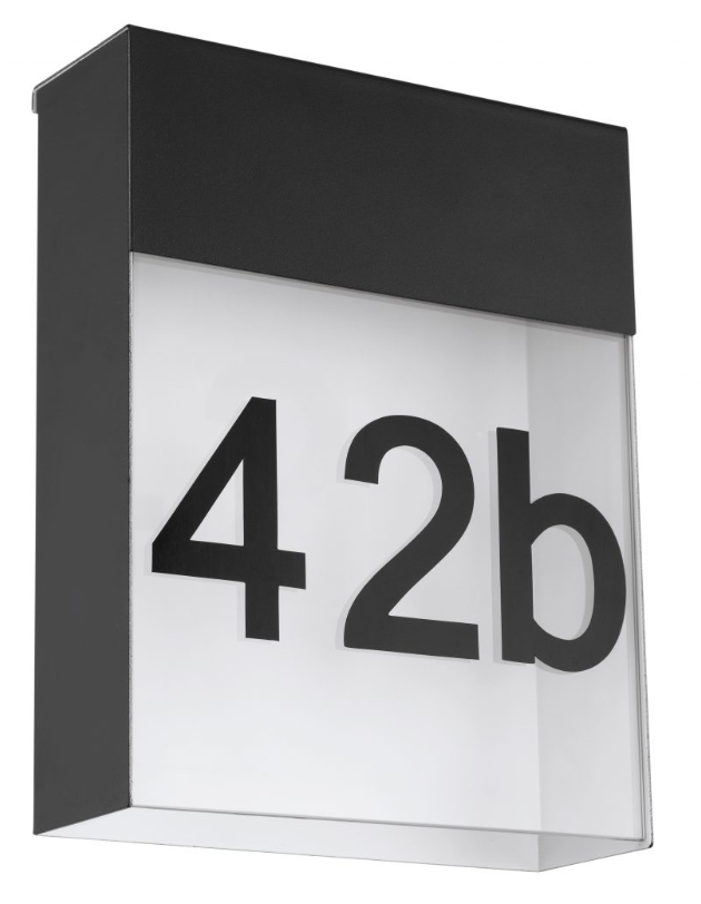 PONSO ANTRACYT/ BIAŁY/PRZEZROCZYSTY OPRAWA KINKIET “NUMER DOMU” 4.8W WW 3000K 450LM IP44 METAL/SZKŁO