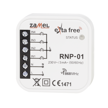 Radiowe nadajniki dopuszkowe RNP-01 i RNP-02 umożliwiają realizację funkcji sterowania urządzeń w ramach systemu EXTA FREE przy wykorzystaniu urządzeń montowanych w puszkach podtynkowych – pod istniejącym osprzętem (przyciski zwierne światło lub dzwonek). Rozwiązanie takie przynosi korzyści w postaci łatwej instalacji systemu EXTA FREE, bez konieczności ingerencji w istniejącą instalację elektryczną. Inną korzyścią jest możliwość wykorzystania osprzętu elektroinstalacyjnego dowolnego producenta, co nie powoduje ograniczeń w zakresie designu i charakteru wnętrz.