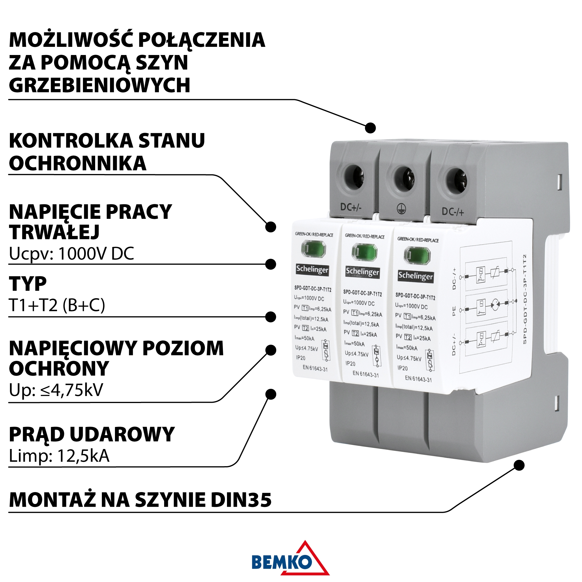 SPBT12-280/4 SURGE ARRESTER T1+T2 B+C 4P 4M 12.5KA 1.5KV TN, TNS